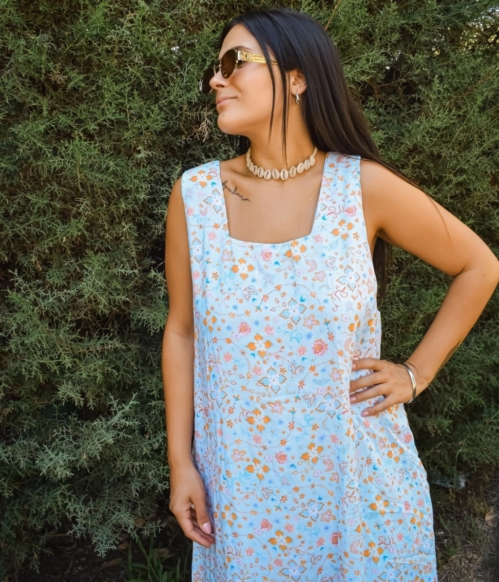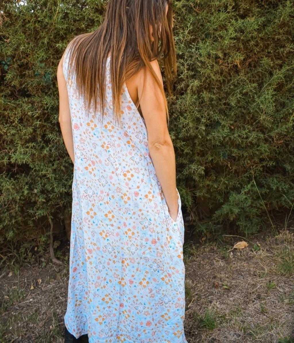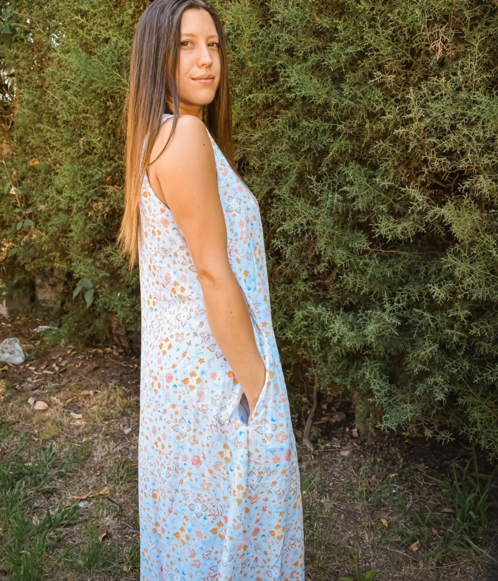 El SAR 4 es un vestido largo, suelto, bien cómodo por sus bolsillos. Ideal para cualquier ocasión y para combinar en capas. De la cápsula "Sarachaga".